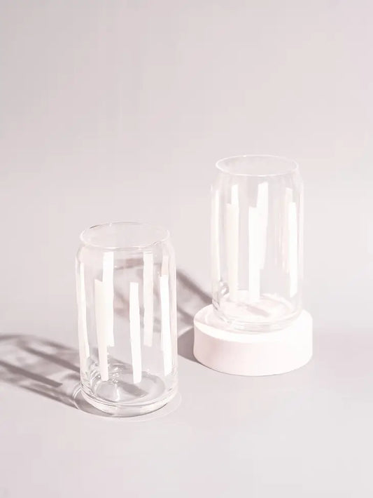 White Striped Screen Printed Soda Can Beverage Glass 16 oz