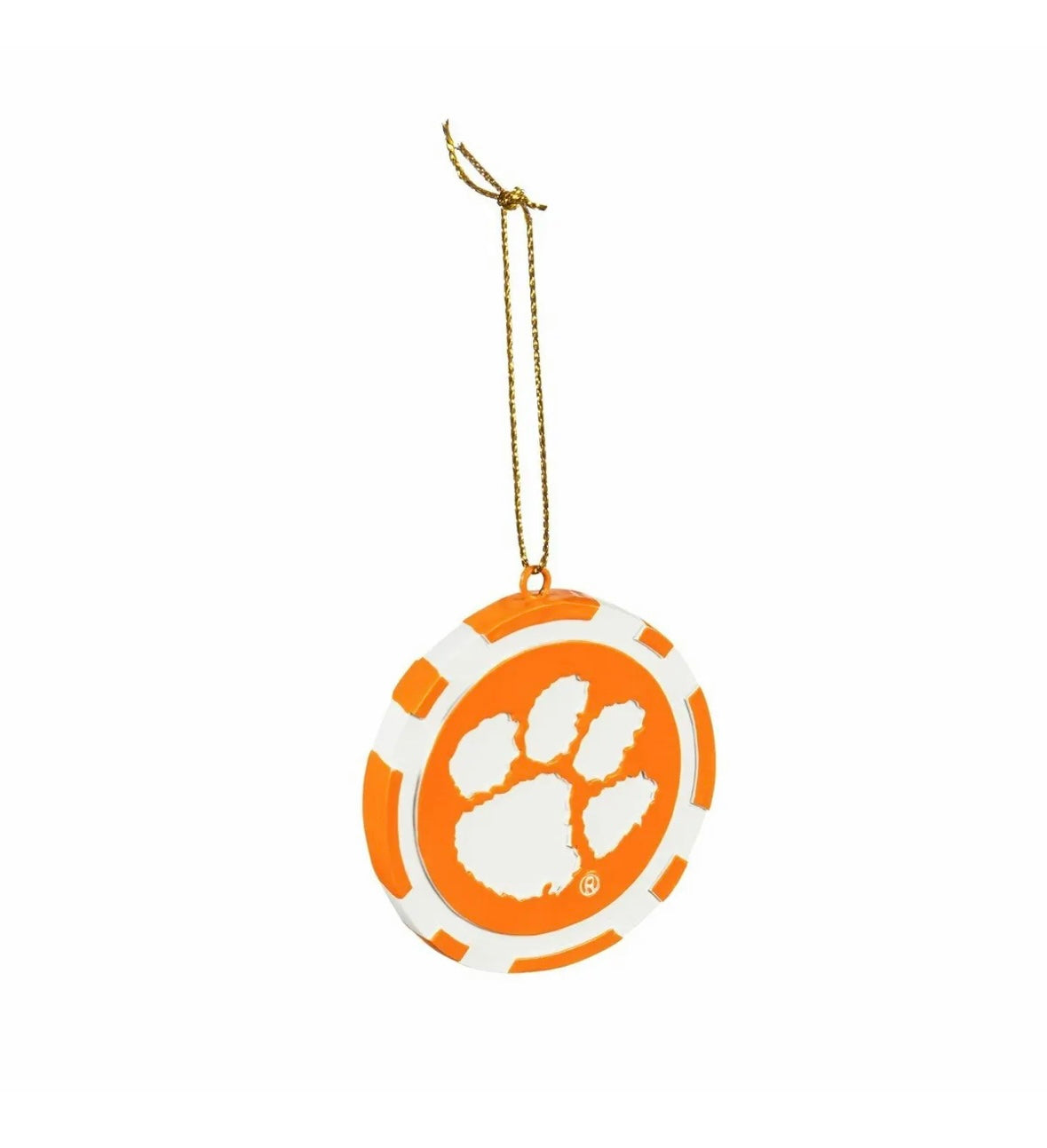 Add this ornament to your collection to show your Tiger Pride. The Poker Chip tradition was started by Coach Dabo Swinney in 2008. The Poker Chip is a metaphor for every player giving 110% and an “All In” effort. Prior to exiting the locker room before kickoff, each player places his chips in the “All In” Bucket.